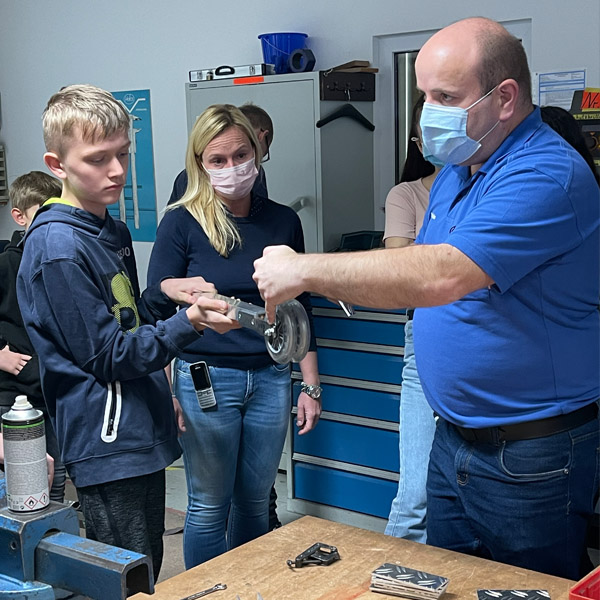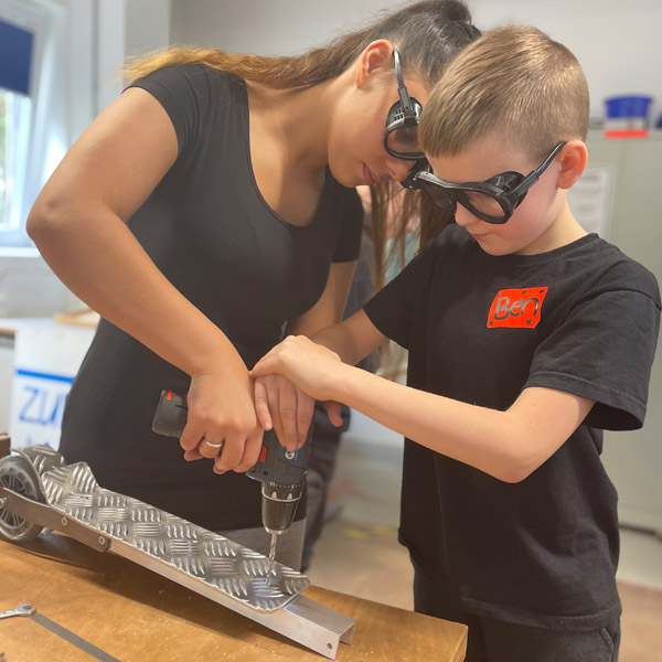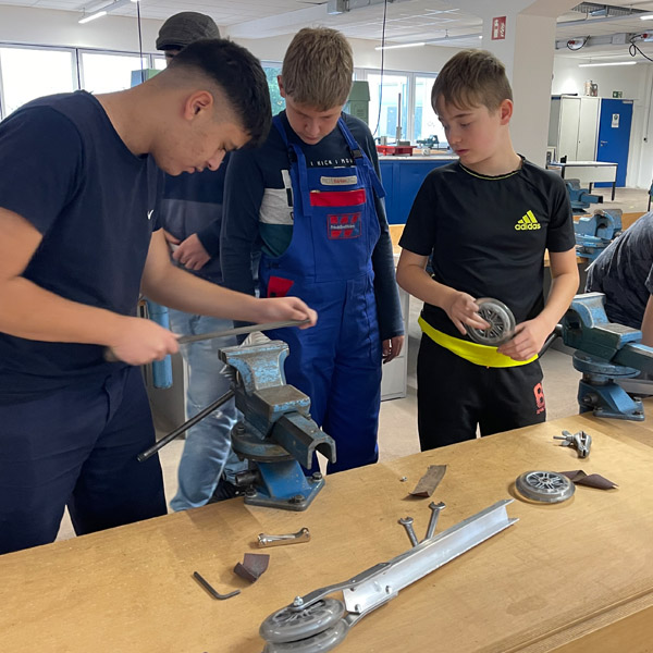 lernt durch praktische Erfahrungen. Alleine das zeugt schon von Motivation. So ein Kickboard herzustellen ist außerdem eine komplexe Sache, alle Teile müssen zueinander passen. Denn schließlich muss es ja verkehrssicher sein“, betonte Ausbilder Georg Palm, der die fachliche Anleitung übernahm. So gab es auch noch einen Exkurs zur „Kickboard-Inspektion“, damit die Jugendlichen auch während des Gebrauchs selbstständig ihr Board regelmäßig einem Sicherheitscheck unterziehen können.